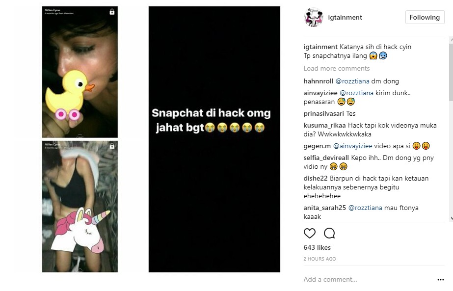 Seolah tak jera, kini beredar video vulgar Millendaru yang membuat geger dunia maya. Postingan tak senonoh itu diketahui berasal dari salah satu akun sosial media Millendaru. Merasa nama baiknya tercemar, melalui postingan di Instagram Story, Millen pun mengaku jika ia tak menyebar video itu. "Snapchat di hack omg jahat bgt," tulis Millen diimbuhi emoji menangis.