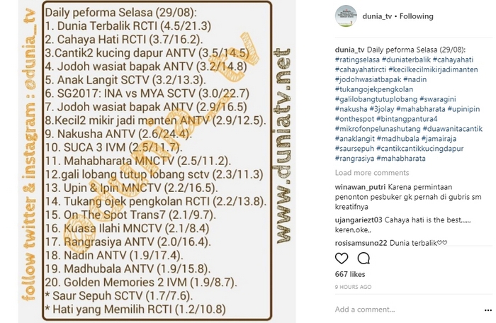 "Mending ditamatin aja dignti yg baru," pinta anggraini4312, "Pemeran utama dah gak ada,mending di tamatin aja," dukung pamungkas180. "Iya makin gajebo ceritanya. Tamat in aja," jawab yang lain.