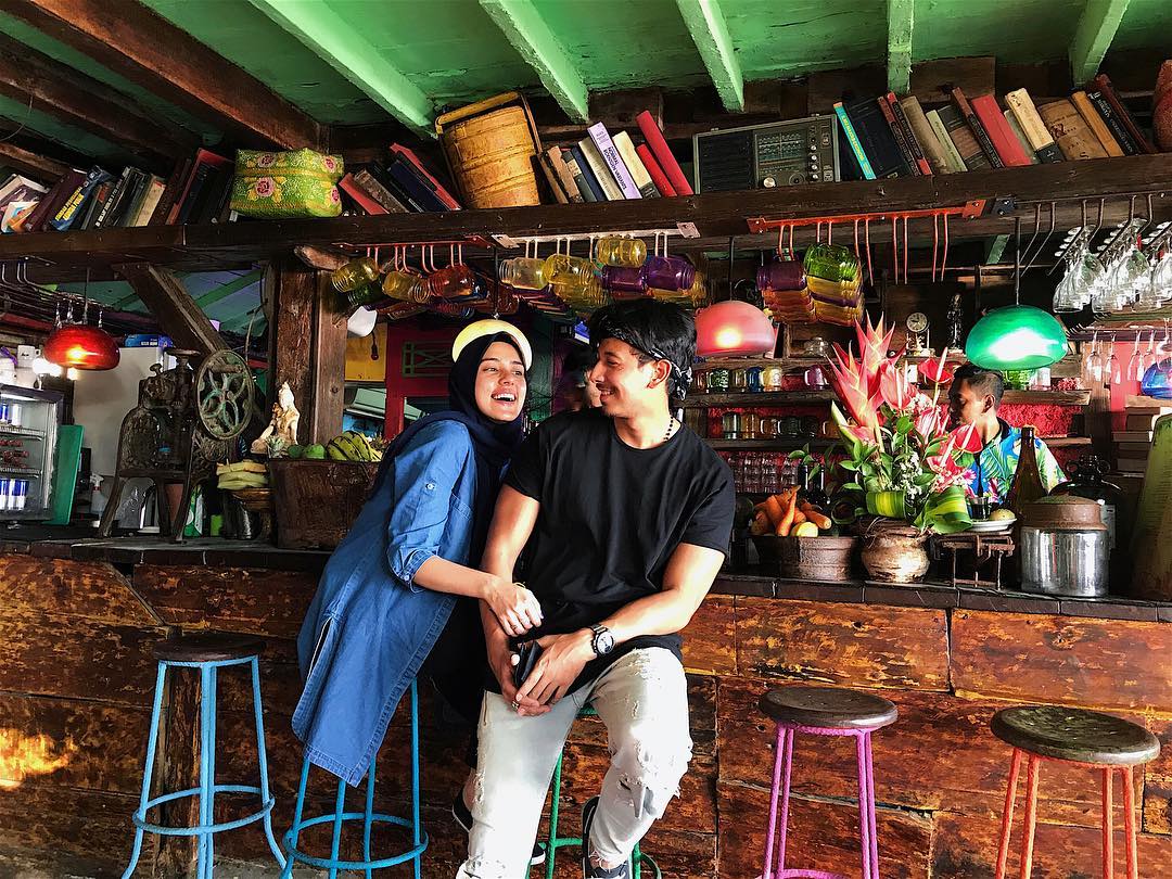 Pasangan muda ini menghabiskan 6 hari waktu di Bali dengan berbagai kegiatan, salah satunya adalah nongkrong di kafe seperti ini.