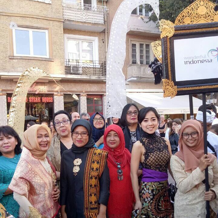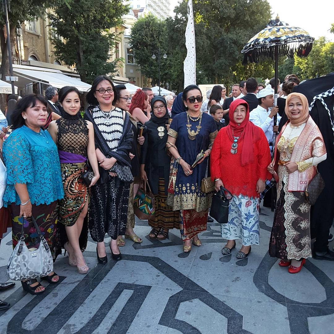 Karina Salim nampak cantik dengan balutan kebaya karya Anne Avantie ditemani oleh para istri Dubes Indonesia.