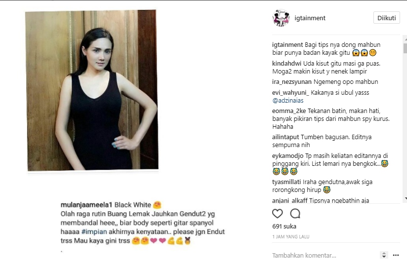Melihat postingan yang telah diunggah kembali oleh akun @igtainment itu, netizen pun kembali melayangkan cibiran untuk Mulan Jameela. Bahkan, tak sedikit yang merasa yakin bahwa penampilan seksi Mulan dalam foto itu berkat editan foto.