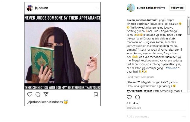 Serangan dari Sariati itu juga diiringi oleh hujatan netter atas kelakuan Jennifer Dunn yang dianggap melewati batas.