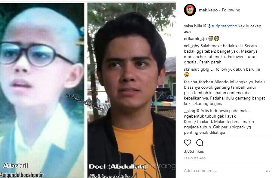 Salah satu akun gosip membandingkan foto saat Aliando masih duduk di bangku SMP dan fotonya sekarang.