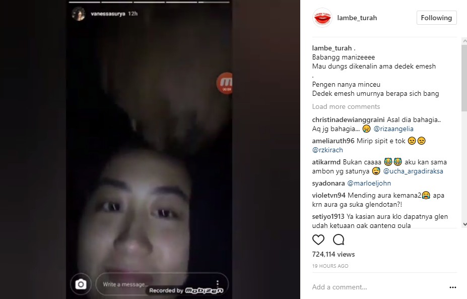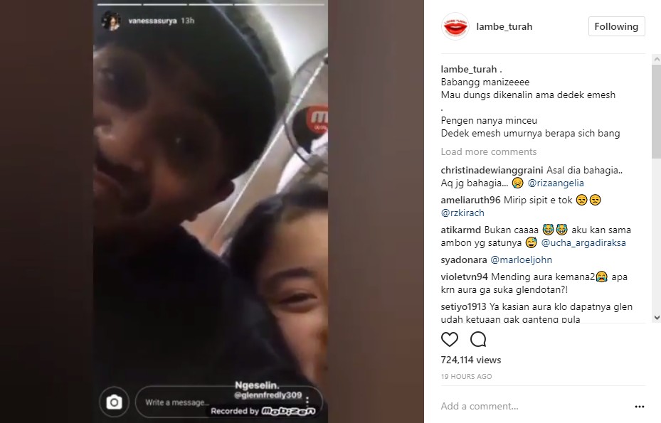 Tak sampai di situ, postingan lainnya menampilkan aksi Glenn yang tak kalah mesra. Saat @vanessasurya asyik merekam wajahnya sendiri di depan kamera, tiba-tiba Glenn mencium kening wanita pemilik lesung pipit itu.