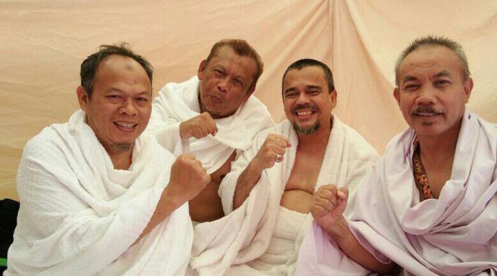 "Yang foto bersama Habib Rizieq, sebelah kanannya itu KH Masum, imam besar FPI Jawa Barat, yang sebelah kiri Akang KH Al-Khaththath. Ini sedang wukuf di Arafah mulai jam 11 sampai dengan jam 7-an malam," ujar Eggi Sudjana.