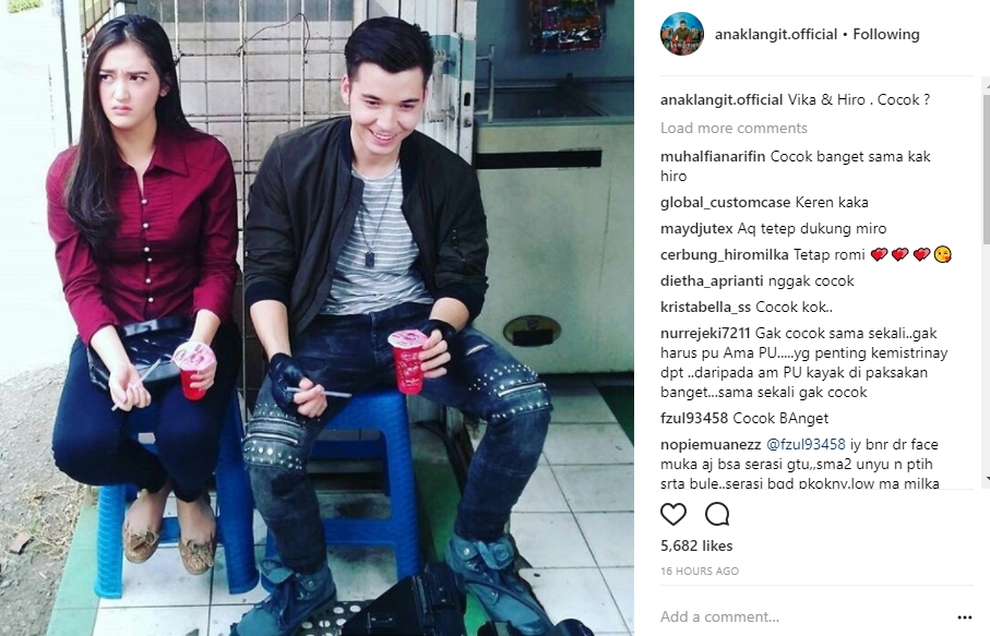 Foto yang disukai lebih dari 5000 orang itu diunggah oleh akun sinetron "Anak Langit" di Instagram dengan nama akun @anaklangit.official. Foto tersebut menampilkan sosok Vika yang nampak cemberut dengan Hiro yang justru pamer senyuman indahnya.