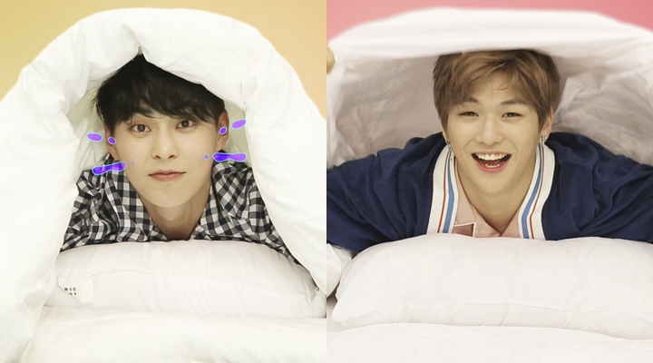 Setelah mendengar seseorang memasuki kamar, Kang Daniel langsung bangun. Masih setengah tidur, member Wanna One itu dengan malu-malu menyapa teman sekamarnya yang baru saja bergabung.