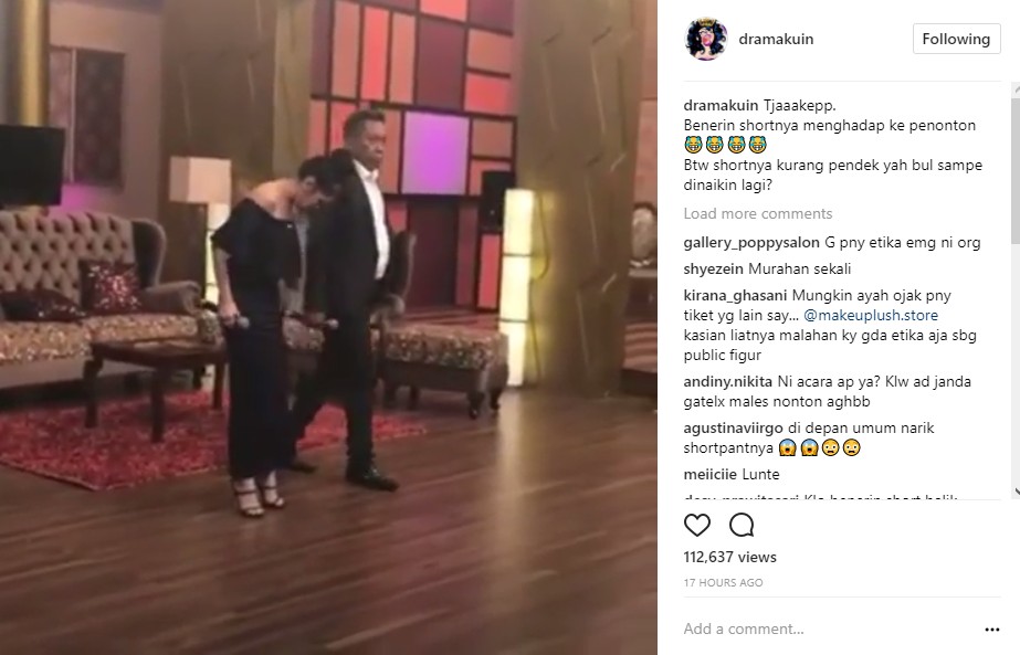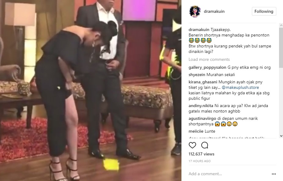 "Masa di depan panggung sih, seenggaknya ke belakang dulu lah, kan malu diliat banyak orang," sindir netizen. "Klo benerin short balik badan kek mba, atau ke backstagd kan lbh sopan ga hrs didpn org n mas tukul jg hedeehhh kelakuan," kata lainnya. "Heran sma kelakuan nya ,," imbuh lainnya.