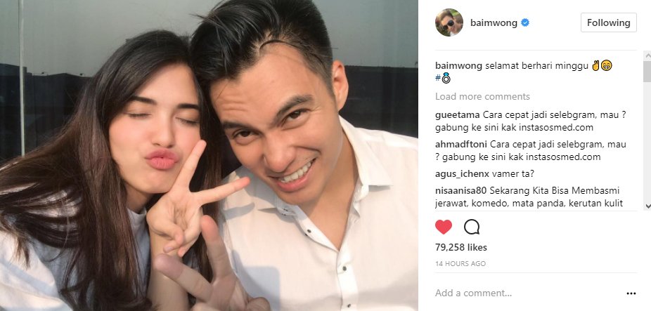 Mengetahui hal itu, netizen pun menjadi heboh. "Cieeee ada cincinnya @baimwong," kata netizen dengan tertawa. "Ohh uda dipakein cincin? Bentar lagi dong," kata lainnya. "Ciee hast tagenya kak @baimwong," timpal lainnya.