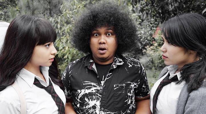 Di samping kanan kirinya ada Nikita Willy dan Lula Lahfah yang saling berpandangan. Keduanya kompak mengenakan seragam sekolah anak SMA dan terlihat seolah 'membusungkan dada'.