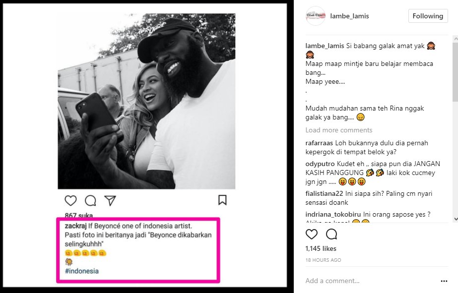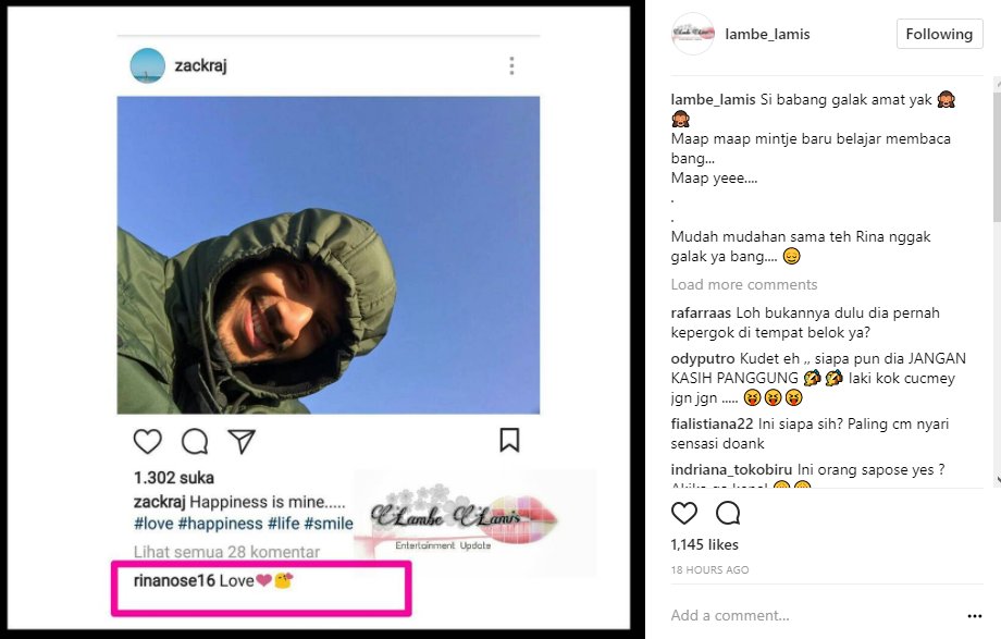 Postingan yang diunggah ulang oleh akun gosip @lambe_lamis itu pun menghebohkan netizen. "Si babang galak amat yak Maap maap mintje baru belajar membaca bang...Maap yeee.... Mudah mudahan sama teh Rina nggak galak ya bang...." tulis akun gosip tersebut dalam keterangan postingannya.