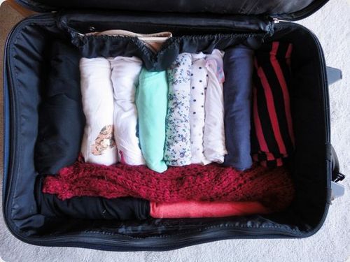 Teknik berkemas dengan menggulung pakaian bahkan bisa muat untuk membawa pakaianmu selama seminggu dalam koper ataupun ransel. Trik ini juga meminimalisir bajumu menjadi kusut saat dibawa. Menggulung pakaian mulai dari kaos, celana, jaket, ataupun pakaian dalam, dapat menghemat tempat dalam koper maupun ranselmu.