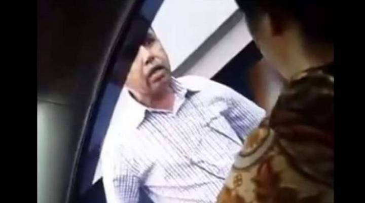 "Bener nggak kamu bawa kendaraan? Bener tidak? Pake aturan, tertib semua orang antre di sini," tanya bapak tersebut sambil menghampiri mobil yang dikemudikan oleh wanita yang diketahui berinisial EB itu.
