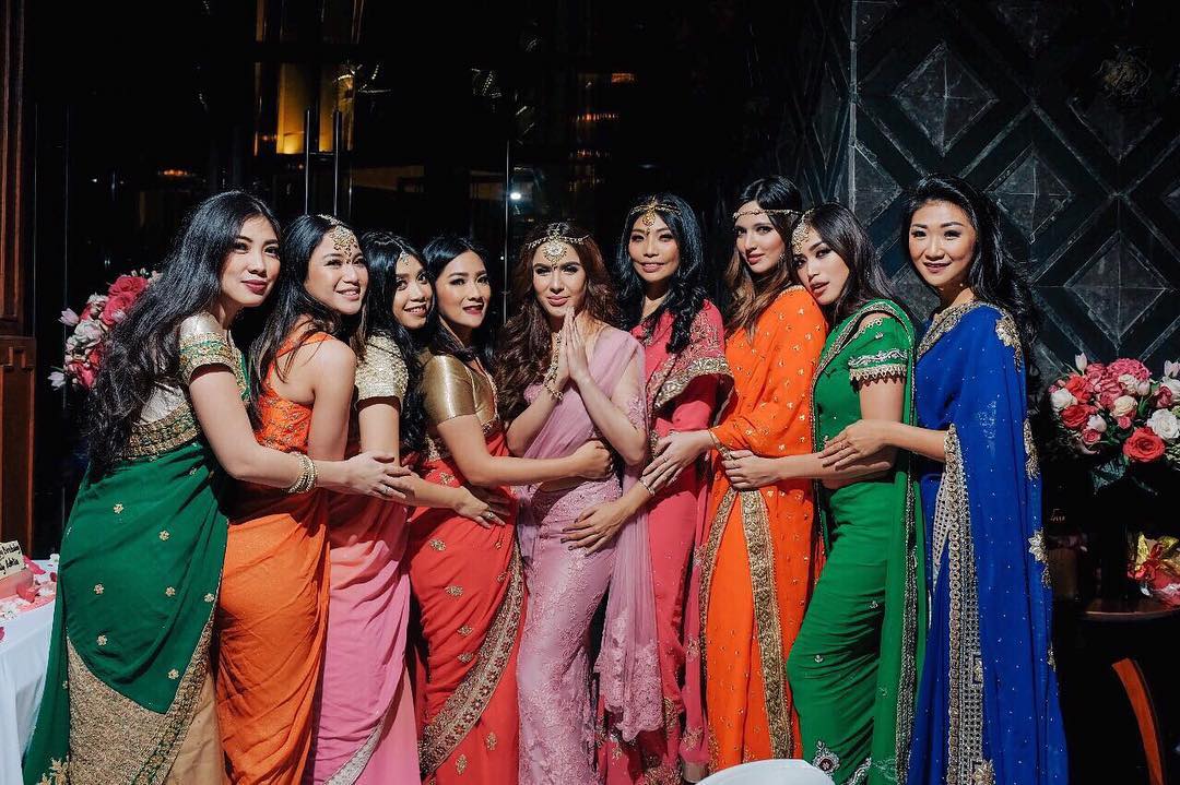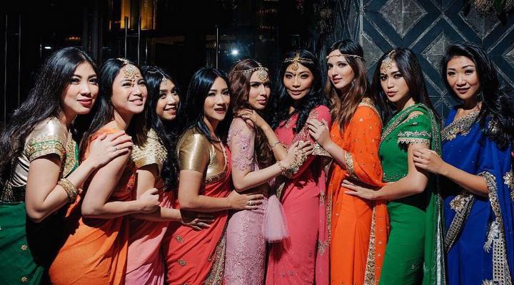 Glamor dan elegan, Girl Squad kompak berbusana ala Bollywood lengkap dengan sari warna-warni.