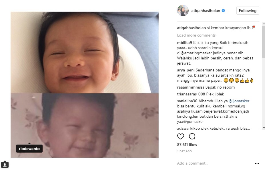 Ungkapan kebahagiannya itu pun diwujudkan dengan berbagi momen pertumbuhan sang buah hati. Rupanya, setiap postingan yang dibagikan Atiqah soal Salma turut menarik perhatian pengikut Instagramnya. Pasalnya, wajah Salma dinilai sangat mirip dengan sang ayah, Rio.