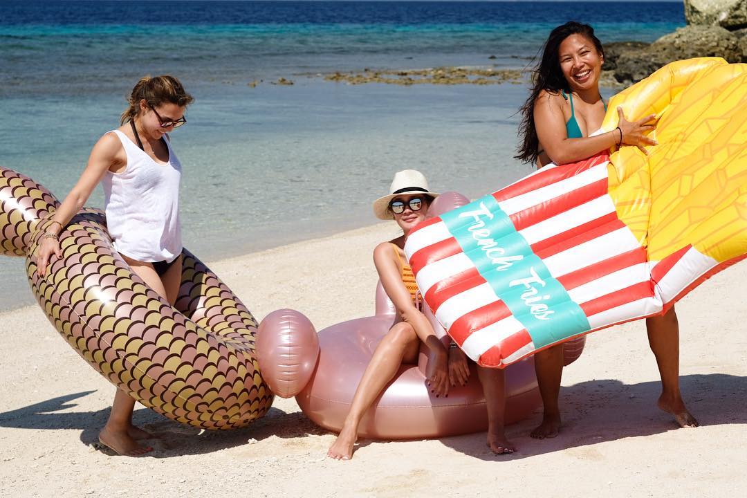 Serunya liburan akan lebih afdol jika ditemani sahabat, dan inilah dia orang-orang yang ikut Luna Maya berlibur. Seru banget menyewa pool floats!