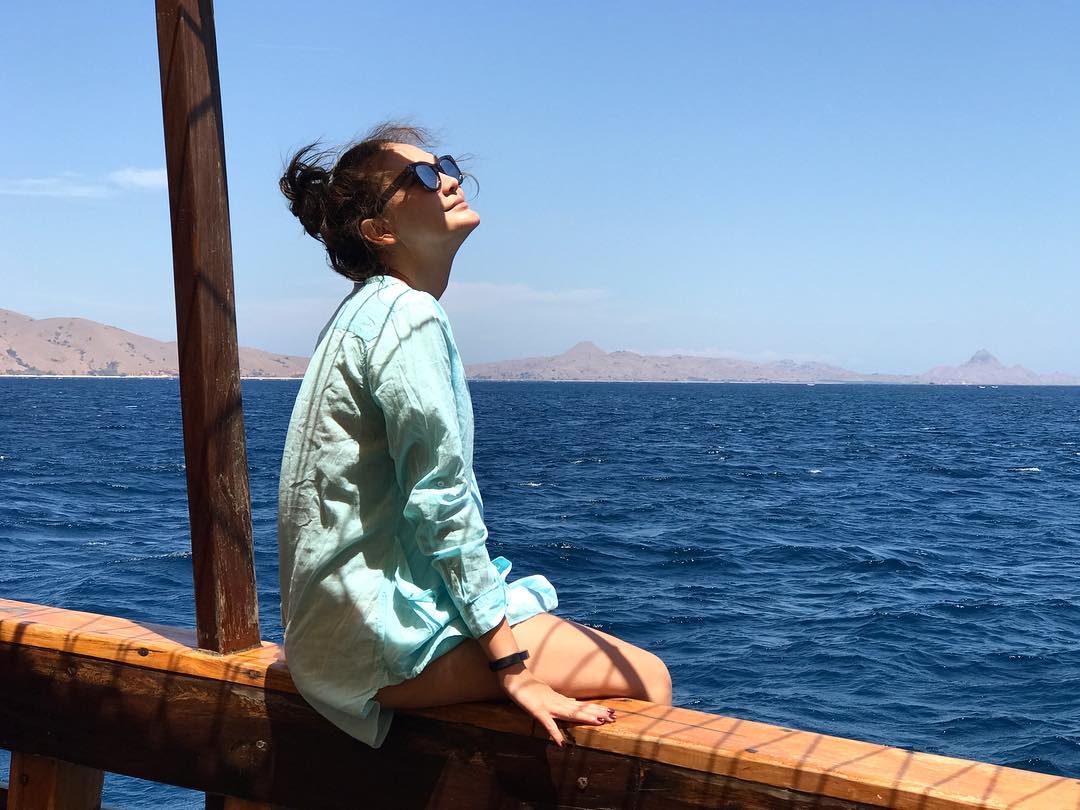 Luna Maya mengatakan bahwa ia menyukai birunya laut Indonesia. Ini adalah saat Luna sedang berada di tengah laut dan berlayar dengan kapal.