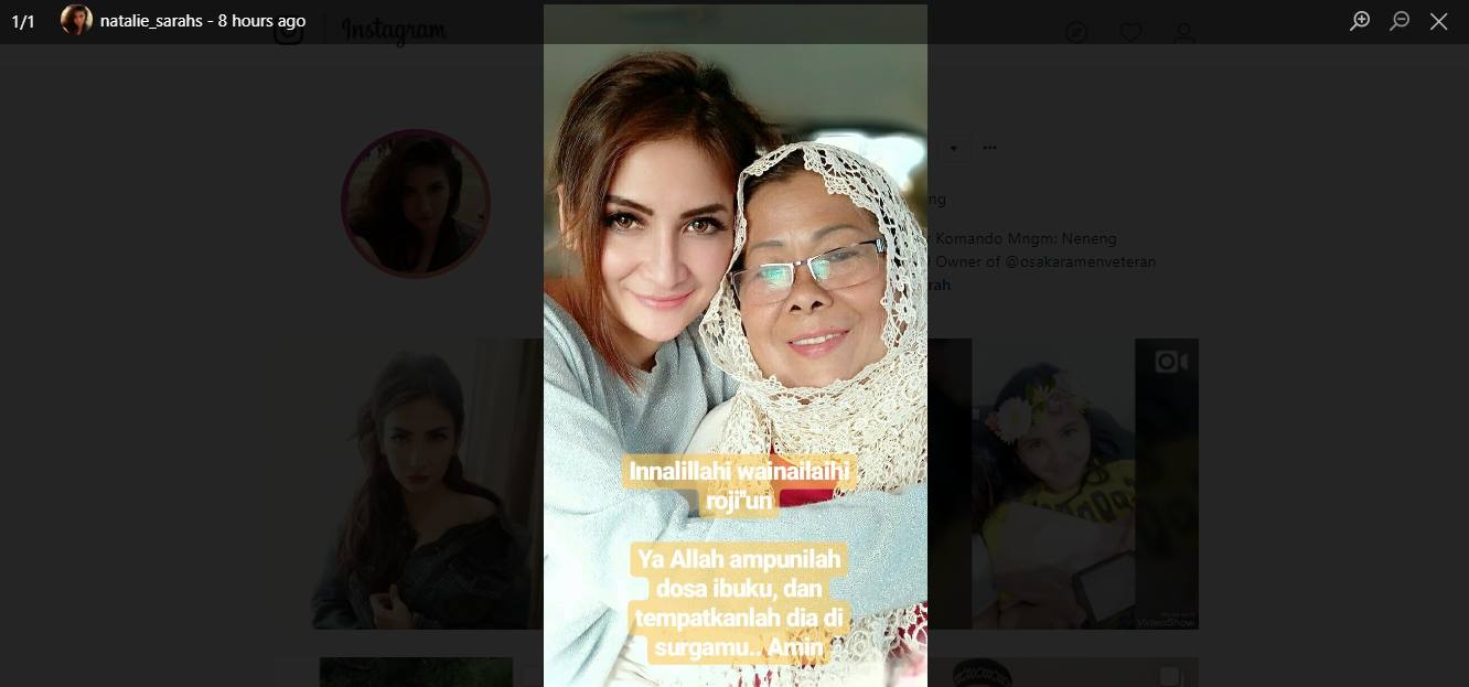 Selain kabar itu, Natalie Sarah juga mengumumkan kepergian sang ibu melalui postingan di akun Instagram pribadinya. Sambil membagikan foto ibu dan dirinya, bintang film "Kawin Gantung" itu pun turut memberi pengumuman pada pengikut di Instagramnya. "Innalillahi wainailaihi roji'un. Ya Allah ampunilah dosa ibuku, dan tempatkanlah dia di surgamu.. Amin," tulis Natalie Sarah dalam keterangan postingan di Instagram Story.