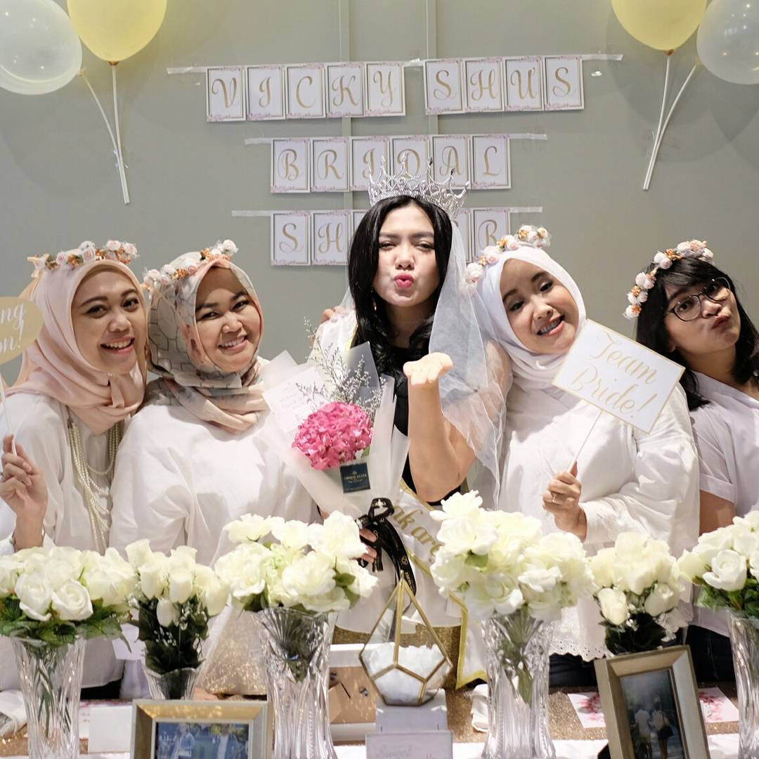 Diunggah melalui salah satu sahabat, Vicky Shu nampak sangat senang dengan bridal shower yang diadakan untuknya. Ia merasa bahagia teman-temannya mendukungnya secara penuh.
