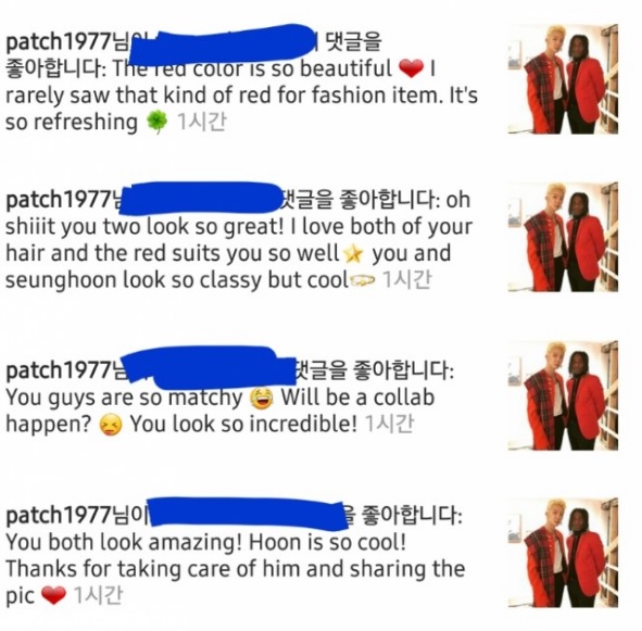Selain itu, Patrick juga ketahuan memberikan 'like' pada banyak komentar dalam postingan fotonya bersama Lee Seung Hoon. Hal itu membuat banyak pihak berspekulasi bahwa Patrick jatuh hati pada style keren Lee Seung Hoon dan ada kemungkinan ia akan meminta pelantun "Really Really" itu untuk menjadi model di bawah naungan agensinya.