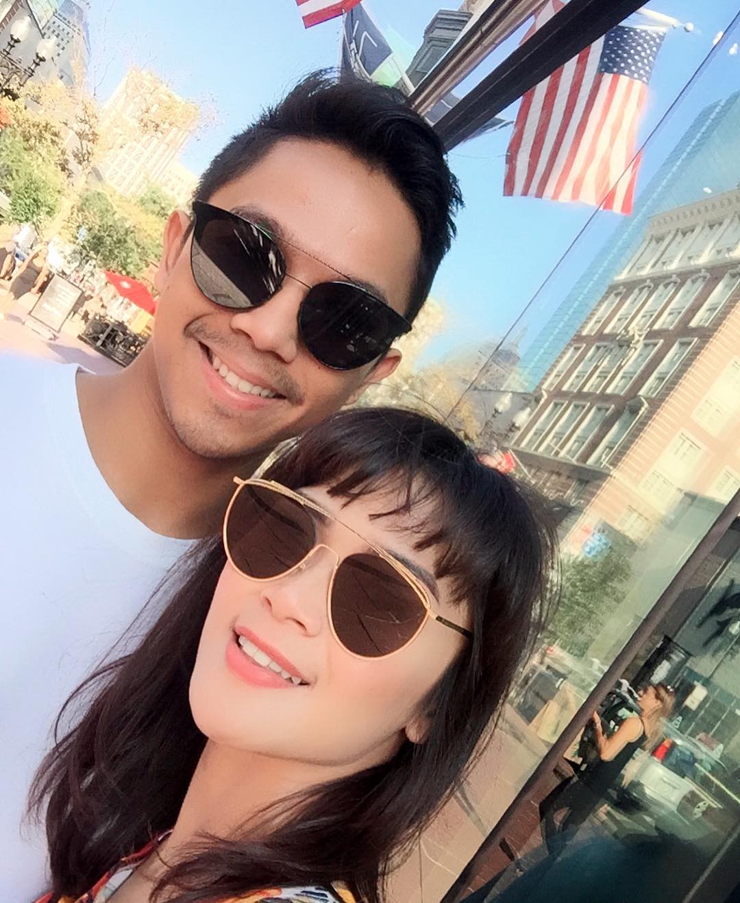Mereka juga tak sungkan lho pamer kemesraan di kawasan Copley Square seperti ini. Duh, bikin iri...