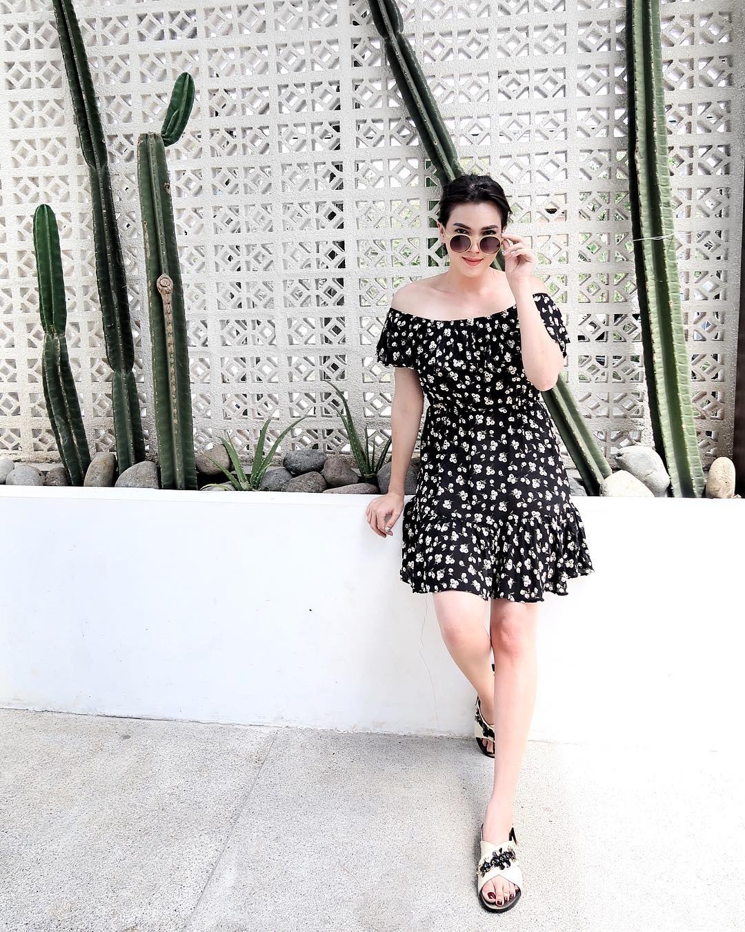 Alice Norin sendiri tak mau ketinggalan gaya fashion terkini meskipun telah menjadi seorang ibu. Dirinya masih cantik dalam balutan sabrina dress saat mampir di Cabina Restaurant.
