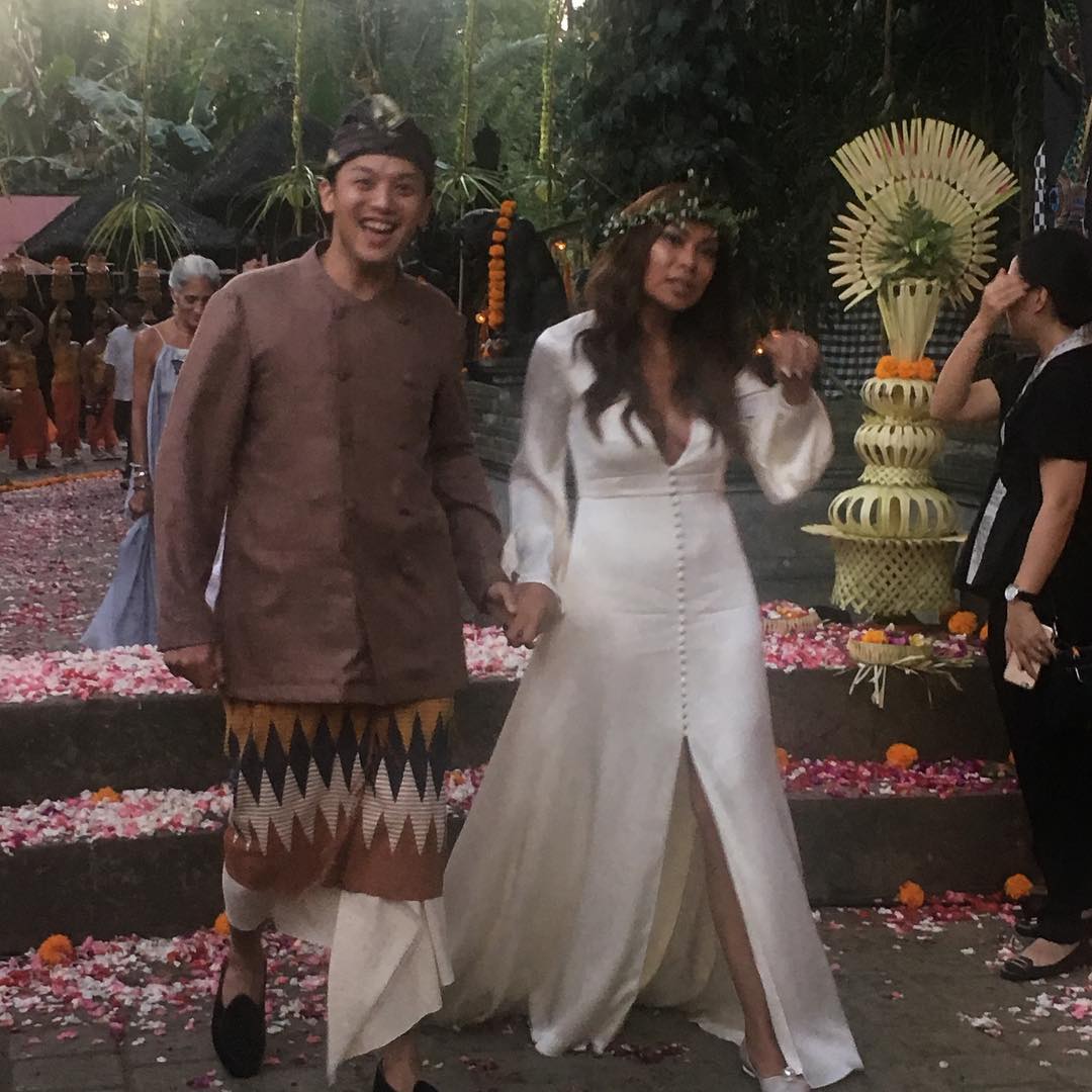Noorani Sukardi sendiri tampil cantik dengan gaun putih berpotongan dada rendah dengan Moreno yang gagah dengan baju adat Bali membalut tubuhnya.
