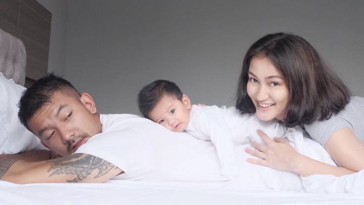 Lucu dan menggemaskan sekali bukan pose keluarga kecil ini? Kompak memejamkan mata, Rio dan Atiqah bersama Baby Salma tiduran di atas hammock.
