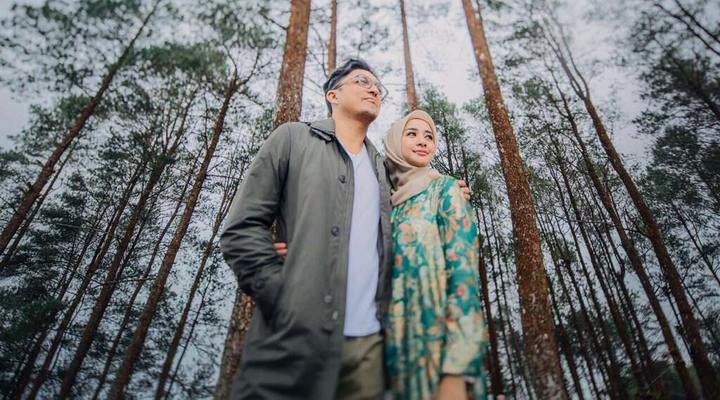 Rona bahagia terpancar di wajah pasangan yang terpaut usia 13 tahun ini dalam foto.