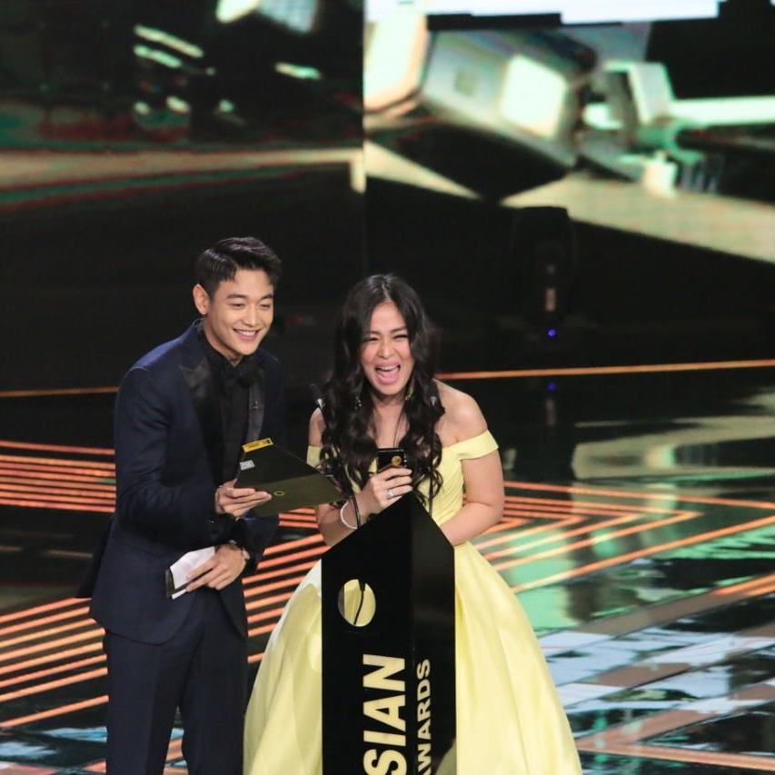 Bersama Gracia Indri, Minho pun membacakan serangkaian kategori program yang masuk nominasi ITA 2017. Ia terlihat sangat senang.