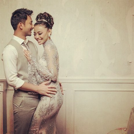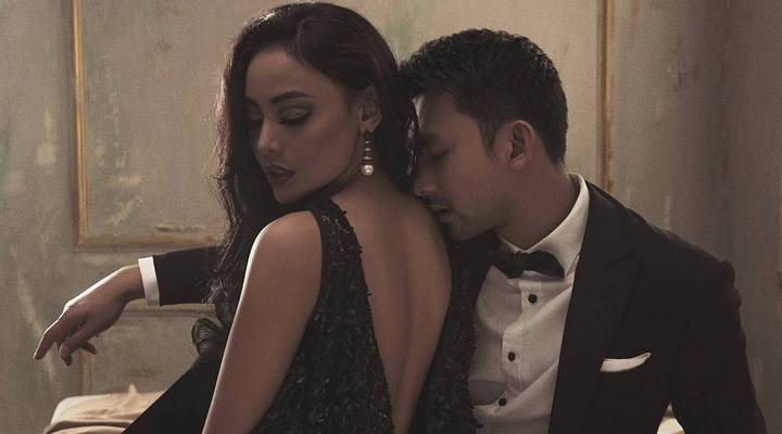 Mengenakan gaun dari Ivan Gunawan yang menampilkan punggung mulusnya, Whulandary berpose intim dengan sang kekasih.