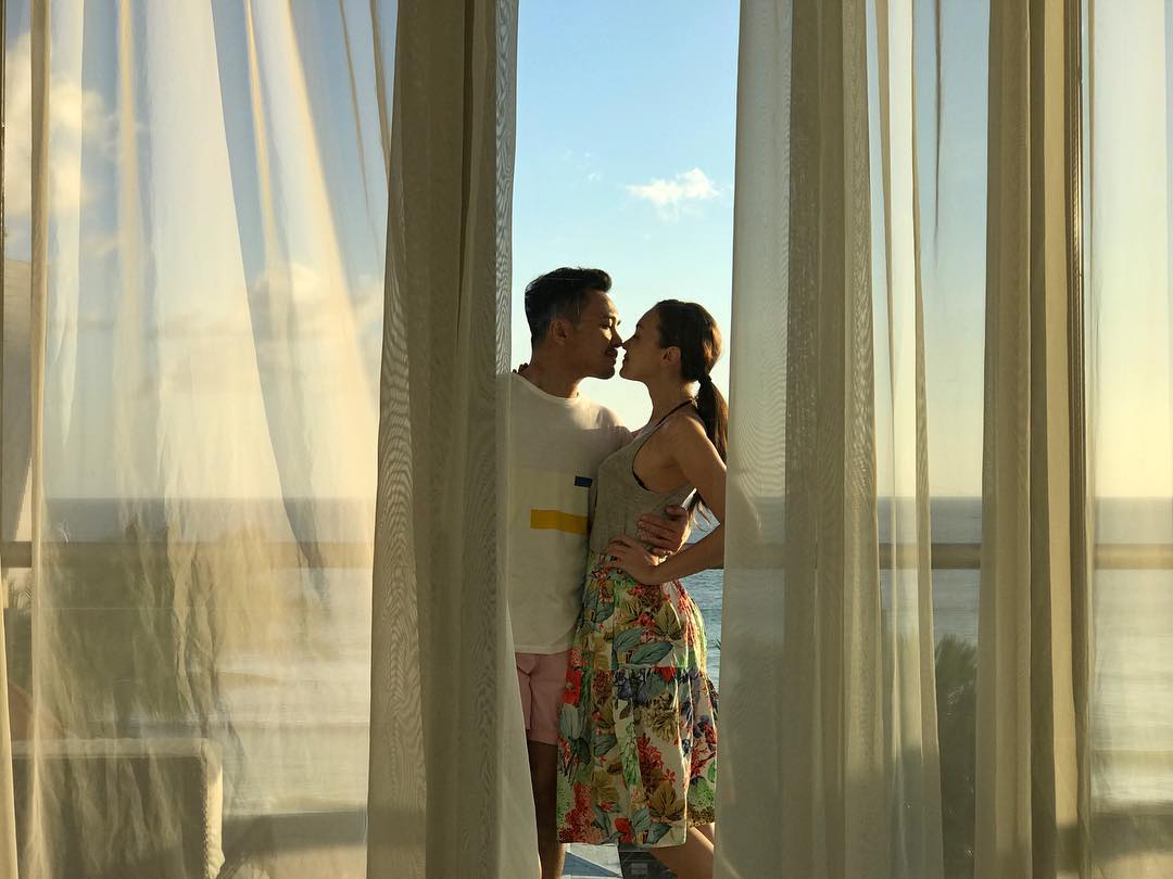 Manisnya! Potret romantis Rianti dan Alfonso ini diambil di balkon hotel yang menghampar langsung ke tengah laut lho...