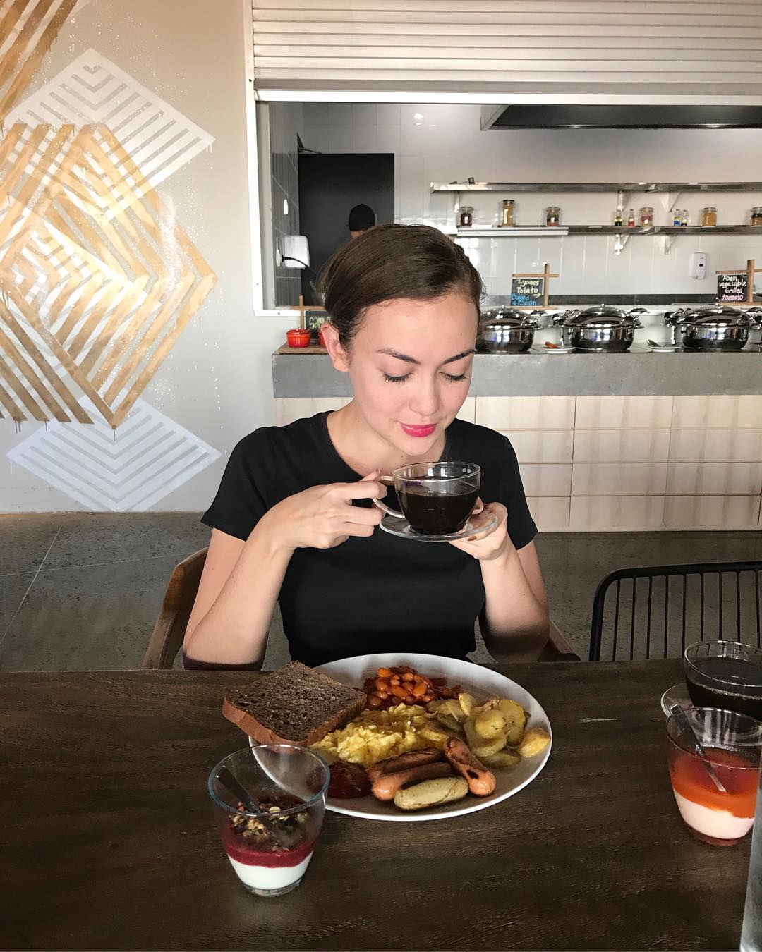 Ini lho menu sarapan Rianti saat tiba di Bali. Ia memilih menikmati kopi hitam di Sol House, kawasan Legian, Bali.
