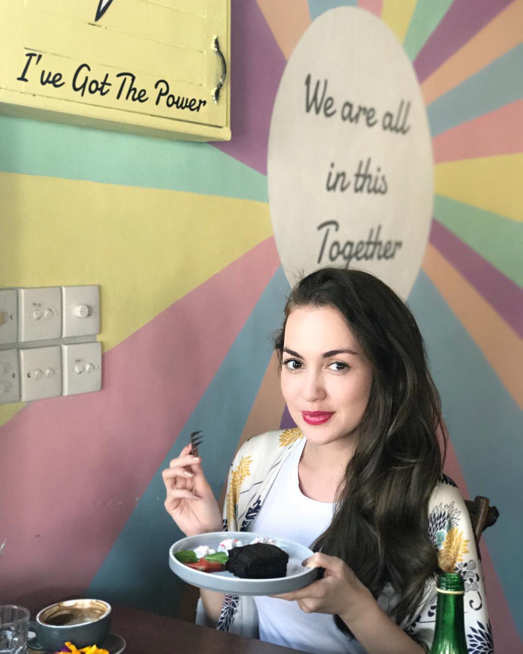 Bintang film "Ayat Ayat Cinta" itu juga melakukan food safari, alias menjajal banyak makanan di Bali. Salah satunya adalah kudapan dari Peloton Supershop ini.