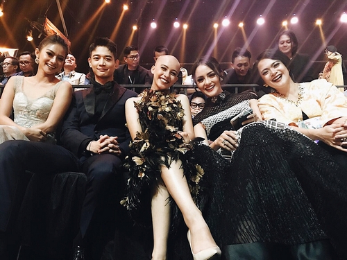 Foto pertama dimulai oleh Shanty, istri Denny Cagur yang juga hadir dalam gelaran ITA 2017. Ia beruntung banget lho bisa selfie bareng seperti ini.
