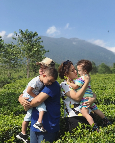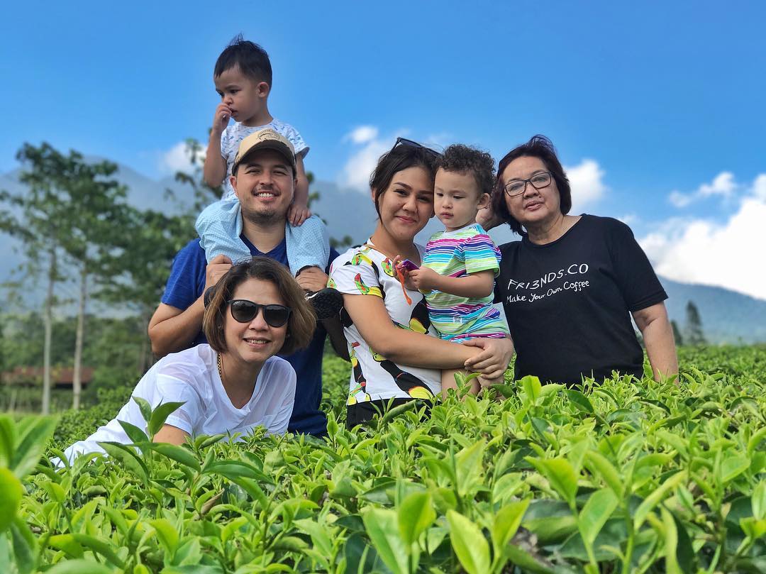 FOTO: Liburan di Kebun Teh Gunung Mas, Anak-Anak Sissy Priscillia Tak Mau Lepas Gendongan