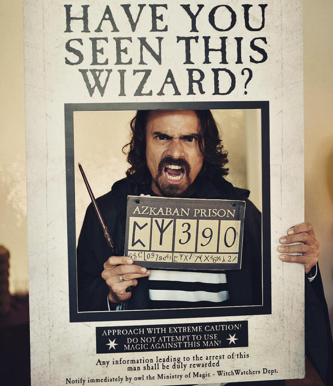 Ashraf Sinclair sendiri memilih Sirius Black sebagai karakter yang ia perankan dalam ulang tahun sang anak. Mirip nggak nih?