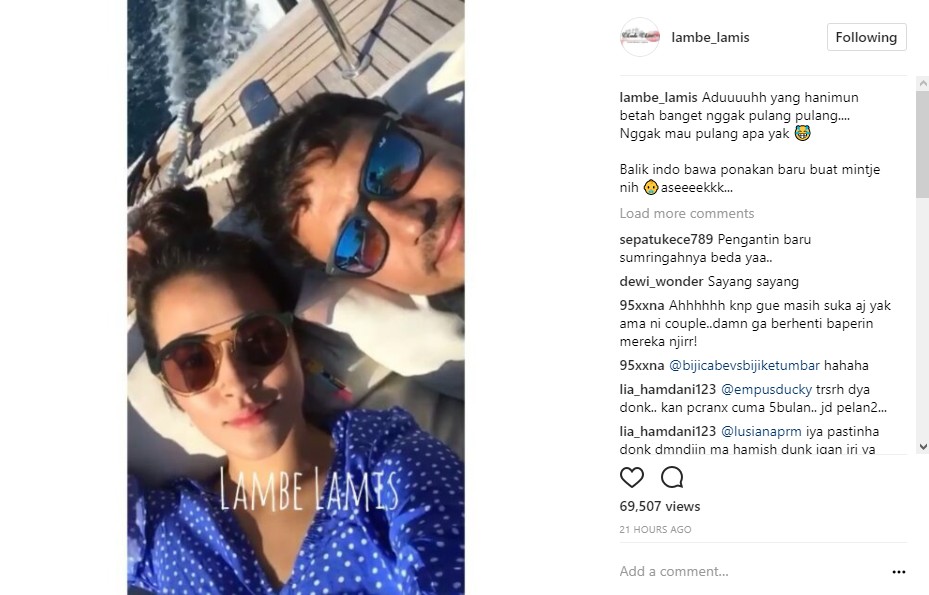 Sementara itu, tak sedikit pula netizen yang menyindir Raisa dan Hamish lantaran mereka terlalu lama berlibur. "ga usah pulang sekalian lah gpp," sindir @shasa_0509. "Udah mau sebulan kagak balik" tuh pasangan," kata @juliaaaks. "Hanimun apa pindah rumah, ngg pulang2," imbuh @als.me.