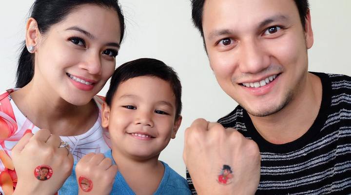 Meskipun sedang hamil, bukan berarti Titi Kamal melupakan caranya bermain dengan anak pertama, Juna. Ia justru seru-seruan bareng dengan berenang seperti ini.