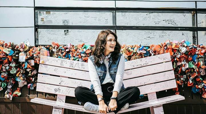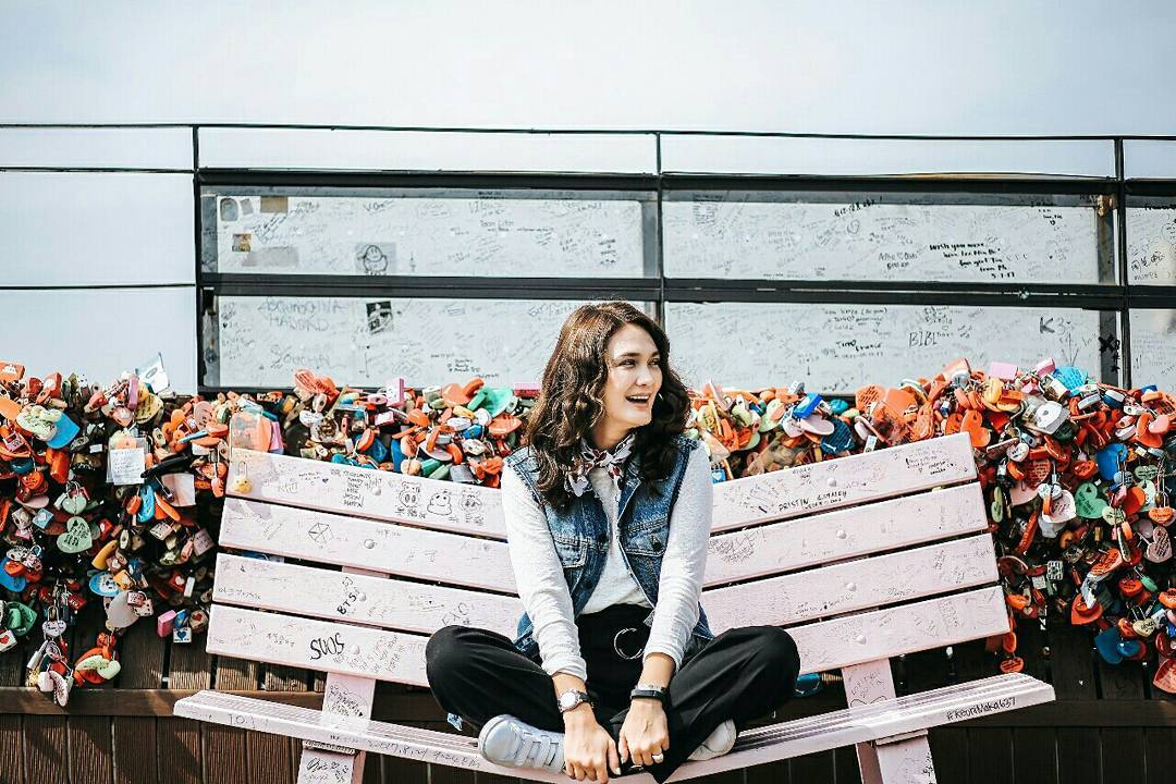 Hebat! Luna Maya menunjukan jika dirinya tak takut ketinggian. Terbukti dari foto ini, ia dengan percaya diri berada 'di atas' kota Seoul sambil menikmati pemandangannya.