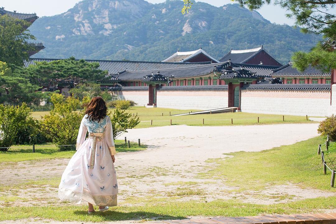 Agar liburan ke Koreanya lebih afdol, Luna menjajal mengenakan busana tradisional ala Korea nih. Yap, pakai hanbok yang cantik ini.