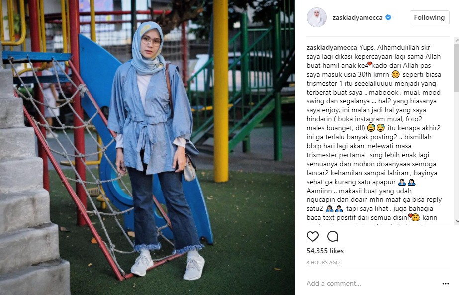 Seperti ibu hamil kebanyakan, Zaskia pun melewati trimester pertama, seperti mual sampai perubahan mood yang mendadak. Bahkan, tak jarang pula ia mengaku malas untuk melakukan pemotretan seperti biasa. Alhasil, belakangan ini, ibu tiga anak itu jarang membagikan postingan.