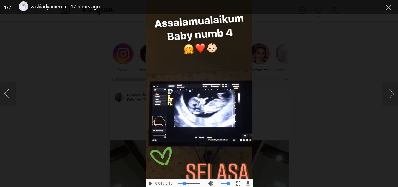 Sebelumnya, kakak Haykal Kamil itu sempat membagikan hasil USG sang buah hati. Melalui Instagram Story miliknya, tampak sang buah hati yang sudah mulai terlihat. Anggota tubuhnya pun terlihat sudah lengkap. "Assalamualaikum Baby numb 4," tulis Zaskia.