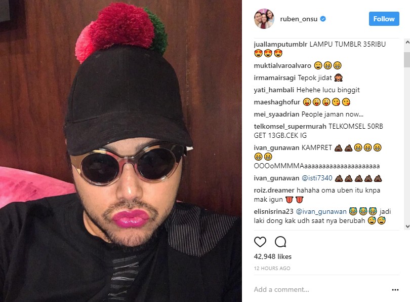 Sontak, postingan Ruben itu mengundang banyak perhatian netizen. Mereka pun tak habis pikir dengan aksi konyol yang dilakukan Igun saat itu. Meskipun demikian, tampaknya tak sedikit netizen yang merasa terhibur dengan foto feminin Igun itu.
