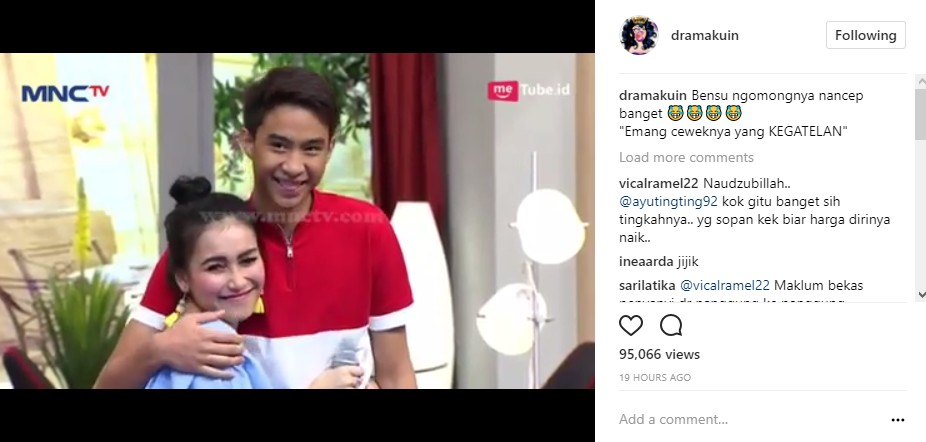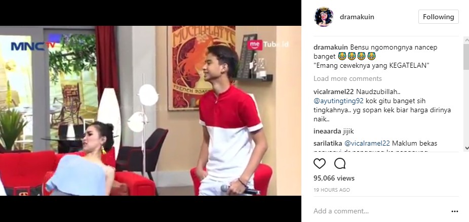 Siapa sangka, aksi Ayu Ting Ting itu membuat Ruben onsu dan Irfan Hakim yang menjadi pembawa acara program tersebut saling mencibir. "Kalo menurut gue, emang ceweknya kegatelan," cibir Ruben yang dibenarkan oleh Irfan Hakim. "Iye, kalo yang cowoknya sih masih polos-polos aja. Yang dia terlalu agresif," timpal Irfan Hakim.