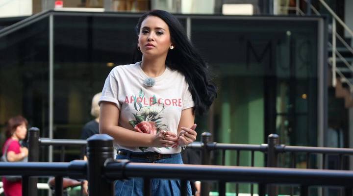 Ayushita sedang menjalani sebuah pemotretan iklan, gayanya yang chic dan kekinian masih mirip seperti ABG.