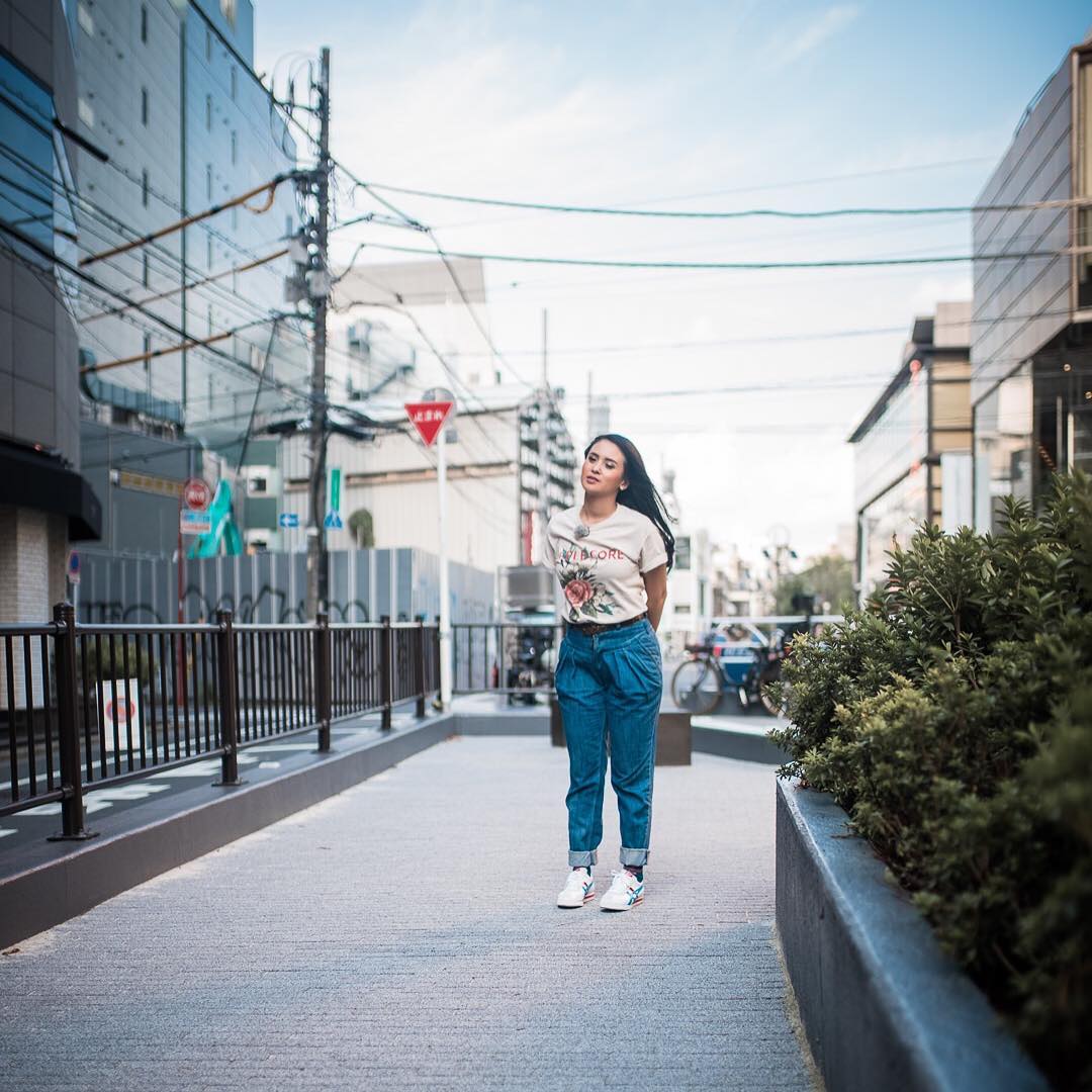 Ayushita sedang sibuk mengerjakan proyek iklannya nih. Ia nampaknya didapuk menjadi model sepatu Jepang bermerk Onitsuka Tiger Japan.