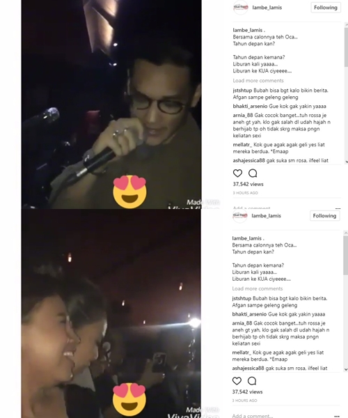 Bukan hanya itu, dalam cuplikan video yang diunggah oleh akun gosip @lambe_lamis, terlihat pula Afgan yang menyanyikan lagu "Versace On The Floor" milik Bruno Mars di atas panggung. Sementara itu, Rossa yang berada di sampingnya, tampak menikmati lagu yang dilantunkan oleh Afgan.