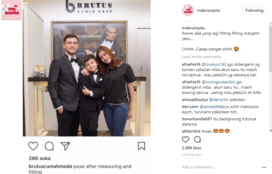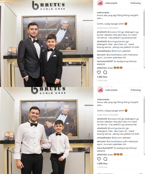 Beberapa pose dengan pakaian itu pun ditampilkan Rifky dan Arsen. Foto pertama menampilkan Rifky dan Arsen berpose bersama Biby yang saat itu tengah mengenakan pakaian kasual. Sementara itu, dua lainnya hanya menampilkan potret Rifky dan Arsen yang mengenakan setelan pakaian formal.