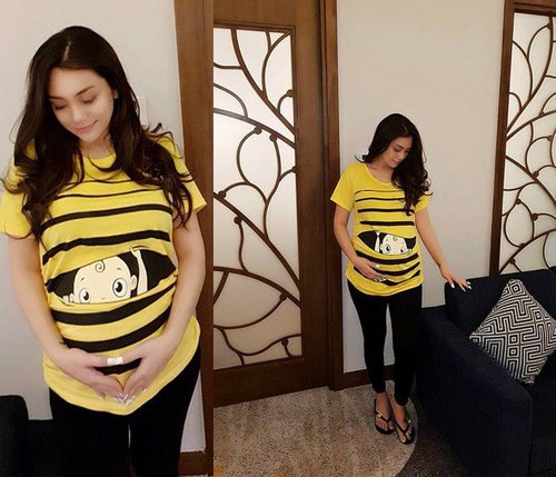 Di kehamilannya yang sudah dekat dengan hari persalinan ini, Celine tampak begitu bahagia.